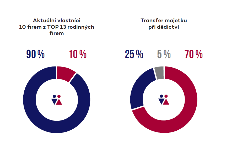 „Z dat o počtu dcer a synů jsme u zkoumaného vzorku vlastníků rodinných firem vypozorovali, že oproti demografickému poměru mužů a žen v celé populaci je u jejich potomků výrazně vyšší poměr žen (56 % dcery, 37 % synové, u 7 % potomků se nepodařilo ověřit z veřejně dostupných zdrojů jejich pohlaví). I to tedy mělo vliv na výsledný podíl vlastnictví v rukách žen,“ vysvětlují autoři studie.