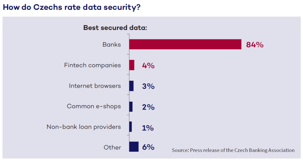 Inspired particularly by Nordic countries, bank identities are a well-tested and functional concept – banks own the basic infrastructure and have their clients, at the same time they are the only institutions on the market to have already authenticated the majority of individuals and transferred their identity via bank identity to the digital world. Apart from that, studies show that consumers prefer banks to government, retail or social platforms as providers of digital identity because they trust them; Czech consumers are no exception.