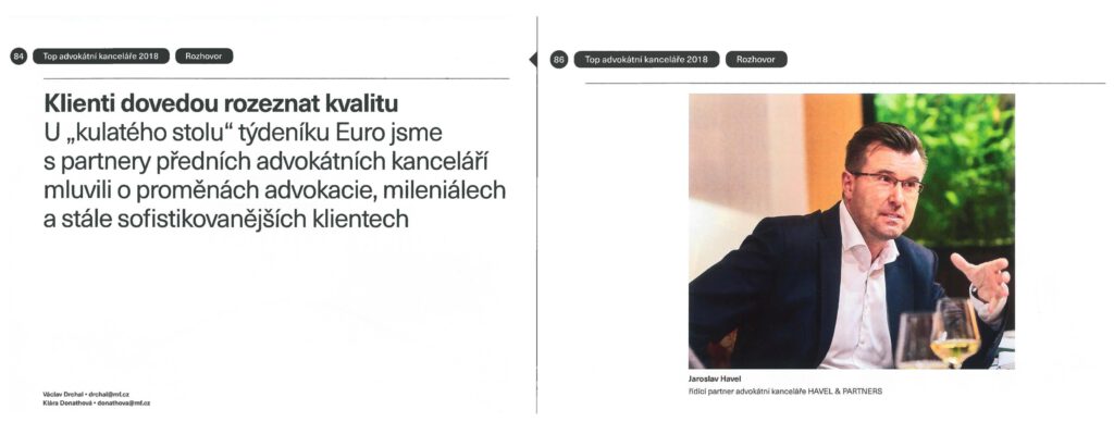 Zdroj: Kulatý stůl týdeníku EURO vrámci speciálu TOP advokátní kanceláře 2018 (s. 84 – 87)