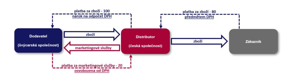 Z pohledu DPH Distributor v rámci nastaveného modelu odváděl v ČR DPH z ceny, za kterou zde léčivé přípravky distribuoval (prodával). Marketingové služby přitom Distributor vykazoval jako poskytnutí služby s místem plnění mimo tuzemsko, a tedy příjem z těchto služeb byl od DPH v ČR osvobozen (s nárokem na odpočet). V konečném důsledku proto Distributorovi vznikal vyšší nárok na odpočet DPH na vstupu, než byla jeho daňová povinnost na výstupu.